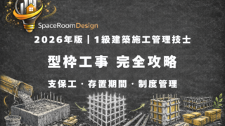 躯体(型枠) 【2026年版】一級建築施工管理技士|型枠工事はここだけ覚えろ(支保工・存置期間・精度管理)【過去10年の出題パターン分析】 2026年(令和8年)一級建築施工管理技士対策。型枠工事の頻出(支保工・存置期間・精度管理)を荷重の流れで整理。現場イメージで理解し、施行分野で確実に得点するための攻略記事。 2026.03.01 躯体(型枠)