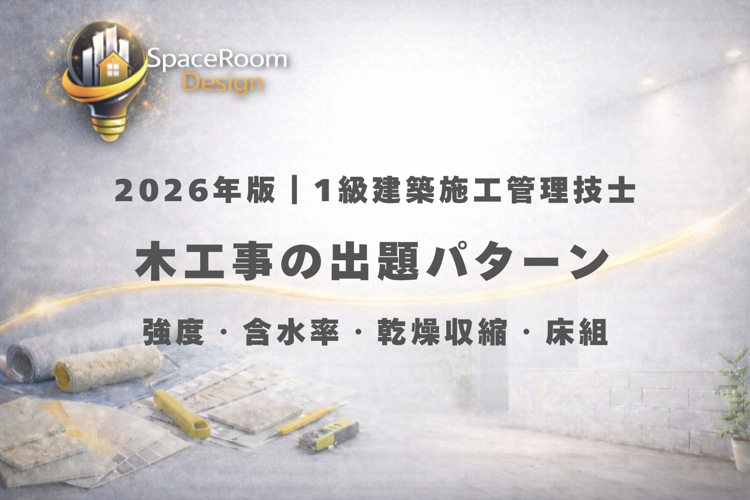 【2026年版】一級建築施工管理技士|木工事はここだけ覚えろ(強度・含水率・乾燥収縮・床組)【過去10年の出題パターン分析】
